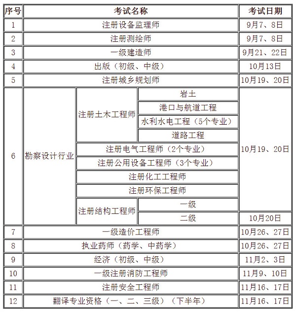試點時間為2019年6月至11月。試點范圍為2019年下半年由部考試中心負責(zé)組織實施的全國專業(yè)技術(shù)人員資格考試(附件)。