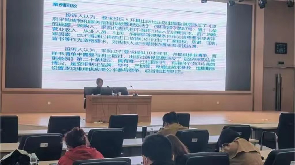 本次培訓(xùn)由我公司招標(biāo)部總監(jiān)康敏茹作為主講人。培訓(xùn)主要從:采購人系統(tǒng)操作全流程、合同備案、質(zhì)疑和投訴易發(fā)生原因及處理、投標(biāo)中易串標(biāo)廢標(biāo)點(diǎn)等四個(gè)方面進(jìn)行了深入細(xì)致的講解,對大家遇到的難點(diǎn)問題進(jìn)行了現(xiàn)場答疑。