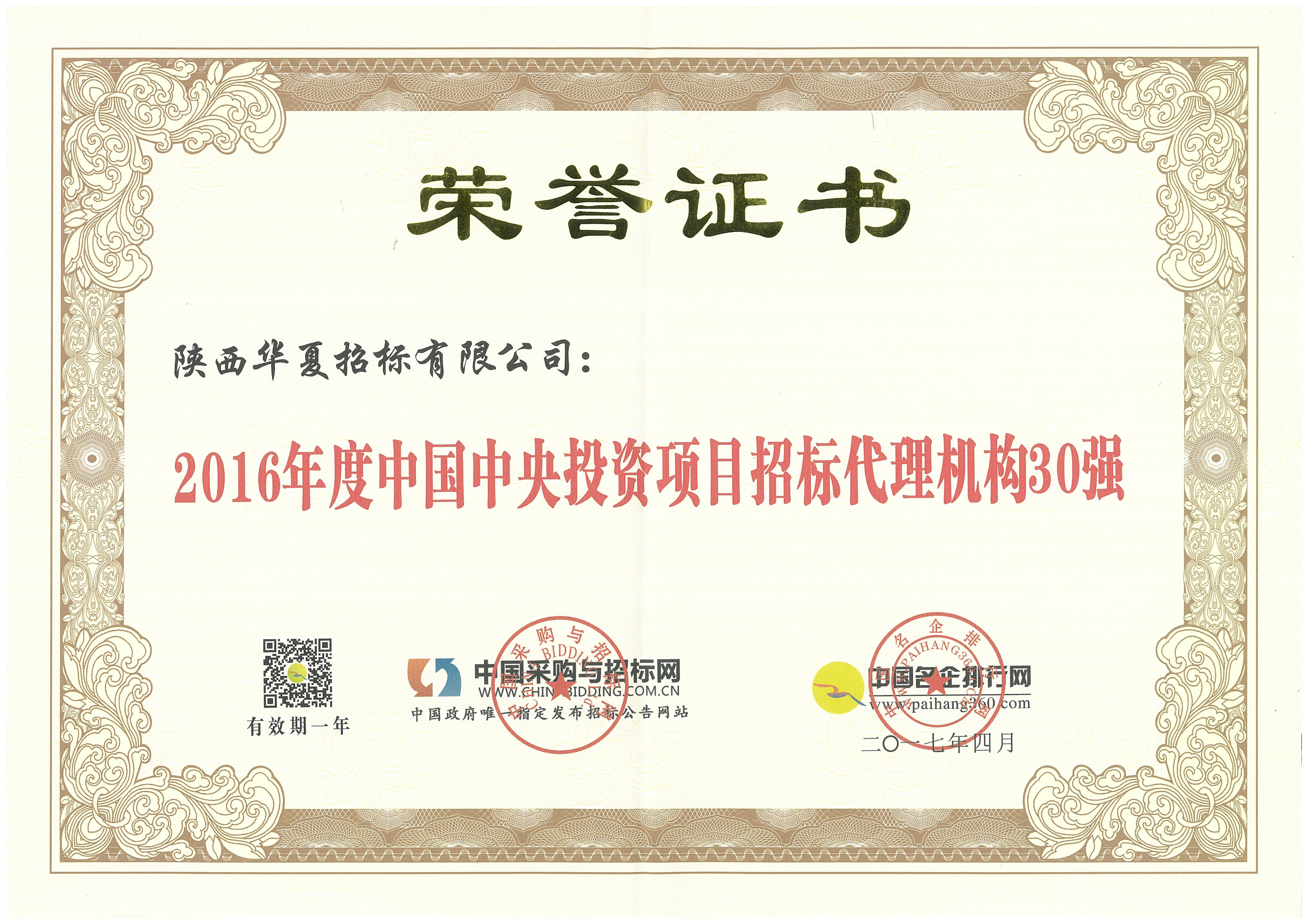 必聯(lián)誠信招標(biāo)機(jī)構(gòu)證書